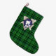 Perfect! Exactly what I ordered! I uploaded a picture of my blue chow, and the screen print was incredible. the back side of the stocking was the red and black checkered print. my puppy's name was also printed on the cuff of the stocking. PERFECT! Highly recommend this product! My puppy's name was screen printed onto the cuff of the stocking, the font was perfect!