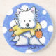 Sandstone coaster featuring west highland white terrier dog breed art by children's book Illustrator, Kim Niles.