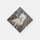 Charming illustration of a sweet Westie or West Highland White Terrier in an old English garden in the style of William Morris.