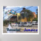Poster with a picture of Westmoreland Jamaica. Photo of an old building and some mini public transport
