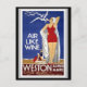 Great vintage illustration of a woman in bathing suit being fed wine by seagulls.Poster for Weston Super-mare in England, a coastal town with air like wine!