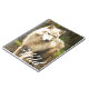 This is a photograph of a beautiful arctic wolf standing behind a fenced area with green forest surroundings in the springtime. This arctic wolf's fur is wet from the recent rain. It is staring intently at something to its right as it stops pacing around for a second. The slight blur of the background gives this photo a dreamy feel. Is this a special gift for someone? You can customize it to have a name, initial or message on it.
