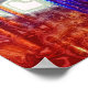 Art for your bar or den, this colorful abstract poster depicts rows of liquor bottles reflecting light on a bar counter surface.