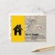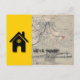 Two parts in front of this New Home Postcard: one with yellow rectangular shape in left with a little black house and tiny envelope, second part of the postcard: map as background to customize. On the map is placed "We've moved" with shadow (no customizable). All infos on the back of the postcard are customizable. You can easily change map and text color, font, size and position by clicking the customize button. Available with white small house.