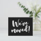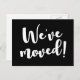 We've moved black & white script font moving Announcement Postcard for new home. Custom move text; We have moved! Add your new change of address on the back. Stylish typography new house cards for home and business. Also great for business, shop, store, company etc.