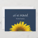 We've moved botanical navy blue moving announcement, with a yellow sunflower and customizable lettering. A country floral way to let loved ones know about your new home.