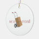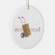 Lightweight, smooth, pure white ornament with nice sheen. Perfect size to be seen from across the room ... and to attract closer inspection! Price was great for ordering enough for the whole family! Clear, bold black design just as requested. Matches the order exactly. Just so nice!