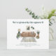 This moving announcement card is modern and features quirky, boho plants, a couch. Check out the rug and the wall art and vintage overhead lamps. Something your recipients would smile about