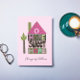 This colorful moving announcement features whimsical pink and green Home Sweet Home text that is playful and cute. A fun way to let friends and family know that you have moved to a new home!