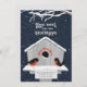 Let your friends and family know that you have a new home! These whimsical 5" x 7" holiday moving announcement cards feature two whimsical robins facing each other on top of their perch in front of their snow covered birdhouse with "home sweet home" bordering the birdhouse door, along with tree branches and stars in the background of the dark blue night sky.