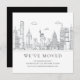 Modern moving announcement for a new apartment featuring a cityscape with the GW Bridge & the Statue of Liberty.