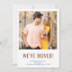 Custom photo moving announcement card with minimalist styling and trendy color palette of burnt orange clay and deep blue. The headline title in modern oversized typography simply reads "we've moved", which you can edit to read "I've moved" if required. The photo template is set up for you to add your own photo, which is displayed in square / instagram format. You can further personalize with your name(s) and new address. A simple, modern minimal design to let your friends, colleagues and family know where you have moved to.