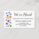 Keep your friends and family up to date with your new address using these bold, colorful enclosure cards. Versatile typography highlights read "We've Moved" on the front and "Stay in Touch!" on the back, using a modern, casual font. Opposite sides of this card, front and back, have been embellished with an array of colorful, cheerful sunshine patterns. The palette includes two shades of blue, teal, purple, rose, Kelly green and tangerine. The rest of the card was left a clean, bright white, with plenty of room for your personal details. Use the template fields to add all your unique details and personalize this design for your own use. All text is rendered in black, which you're welcome to change as you see fit; the fonts can also be changed if you wish to edit the design. // Designed by Melody Watson for Paper Muserie.