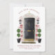 Let your family and friends know that you've moved to your new home with our beautiful and elegant new home announcement card. Our design features our own hand-painted watercolor black front door with red bricks. Accented with touches of gold on the mailbox slot, door handle, and door kickplate. Modern black outdoor wall lights and a burlap welcome doormat complete this charming new home design. Personalize with your new home address number on the front door and add your name and address information. The reverse side features a bold modern red and white stripe pattern. All illustrations are hand-painted original artwork by Moodthology.