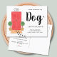 This moving announcement postcard features a red door and pot plants with doggy paws.