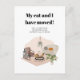 Moving? Don't forget your change of address postcards to let family and friends know about your new place. This card will do just that and you can customize it in just a few clicks. Featuring a sitting room with a cat on the couch, an indoor plant, a chair, rug, centre table, and a hanging plant with a touch of rustic boho feel