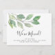 This stylish moving announcement card is decorated with minimalist watercolor foliage in shades of green.
