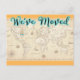 The contrast between old and new is apparent in this unique "We've Moved" relocation announcement postcard featuring an vintage world map and a computer icon placement pin.