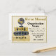 "We've Moved" Postcard on an antique weathered background with hand painted suitcases and world globe. Both the design and fonts in Black and Gold. Optional space on back to announce promotion or other important info. Designer's Tip: The Zazzle Logo and lines on back can be removed if you choose. Designed