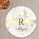Wh & Gold Marble Gold Bar, DIY Black Name Monogram Coaster