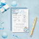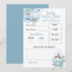 Blue and white whale boy baby shower "predictions and advice" card. To personalize it or change the text, colors and fonts please click the button to edit the design. Includes the date of birth, time, weight, length, eye color, hair color, resemblance, and space to add a message of advice for the new parents.