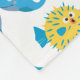 Adorable baby pattern featuring blue whale cartoons and yellow color puffer fish with blue spikes and a round badge with a baby name monogram.