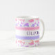 Cute pink, purple and yellow personalized with name coffee mug with sweet whales swimming on it. A perfect birthday gift, housewarming, Christmas gift.