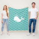 Beautiful whale on abstract teal wavy ocean Fleece Blanket. Beautiful fashion stylish fleece blankets.