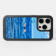 This case depicts a nautical scene with a ship on the horizon featuring a whale's tail in the foreground of a beautiful blue ocean.