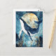 This breathtaking design features a majestic humpback whale shown gliding gracefully in front of a massive, glowing full moon. Created as a high-quality digital illustration in a sophisticated watercolor style, the whale has deep indigo skin adorned with white speckled stars and a prominent white underbelly. The character is captured in a vertical dive against a celestial backdrop where delicate white constellations and stars shimmer in the dark blue night sky. Below the whale, stylized golden-brown seaweed and aquatic plants grow from the shadowy depths, accented by shimmering gold paint splatters and light bokeh effects that create a sense of magical underwater wonder. The overall aesthetic is mystical, serene, and full of artistic elegance, making it an exceptional choice for marine life enthusiasts and fans of celestial-themed nature art. This mystical whale postcard is a perfect choice for sending a "thinking of you" note or a meaningful message of inspiration to a friend who finds peace in the deep blue sea. You might choose to use this artistic card for a celestial-themed moon party invitation or as a beautiful way to share a message of joy for any situation or event. It also makes a stunning decorative piece for a modern office wall or a stylish addition to a dream journal as a small token of nautical magic. This versatile design is also an excellent choice for a housewarming message, a graduation thank you note, or to celebrate a professional achievement with a touch of cosmic elegance for your colleagues.