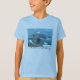 This painterly rendition of two children as they watch two Orca whales swim past has a peaceful, dreamy quality.