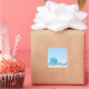 An cute sticker with blue whale swimming along on blue ocean waves. Customize for party bags, envelope seals for invitations, etc.