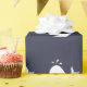 White whale on navy wrapping paper. Matching tags available.