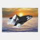 Whales at sunset towel
