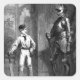 Vintage victorian engraving of a young boy in his cricket gear looking at an old Suit Of Armor.