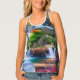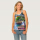 Women's All-Over Print Racerback Tank Top, White Piping, S