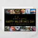 A modern photo collage valentines day card, featuring 12 of your favorite photographs from the year, in a photo strip style, over a black background with a real gold foil template valentines greeting. Font styles and background color can be changed easily by clicking on the customize further link after personalizing.
