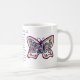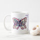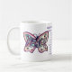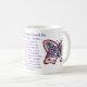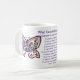 The mug features a painting of the poem "What Cancer Cannot Do" with peace word butterfly art. The words of the poem are "What Cancer Cannot Do, Cancer is so limited... It cannot cripple love. It cannot shatter hope. It cannot corrode faith. It cannot destroy peace. It cannot kill friendship. It cannot suppress memories. It cannot silence courage. It cannot invade the soul. It cannot steal eternal life. It cannot conquer the spirit. -Author Unknown"