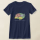 Funny agility cartoon has a fat gray dog leaping off the a-frame, just above the yellow contacts. Below reads, "Contacts? What contacts?" Silly dog lover humor for those in the dog sport of agility. A-frame is pink and yellow, and the background is green. This agility dog tshirt makes a unique gift!