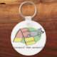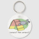 Funny agility cartoon has a fat gray dog leaping off the a-frame, just above the yellow contacts. Below reads, "Contacts? What contacts?" Silly dog lover humor for those in the dog sport of agility. A-frame is pink and yellow, and the background is green. This agility dog keychain makes a unique gift!