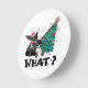 WHAT Funny Black Cat Santa Pushing Christmas Tree Round Clock