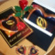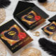 A very unique and beautiful envelope to mail your wedding invitations. These envelopes have a printed image of an acrylic painting of two gold wedding bands inside a gold heart. There is a love red rose on the side of the heart. You can customize the envelopes for your special announcement. There are matching customizable invitations available.
