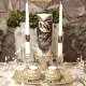 Beautiful candle designed for your special wedding day. These candles has a printed image of a painting of two wedding silver rings inside a crystal heart-shaped bubble. Great for wedding center piece.
