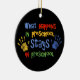 What happens in preschool, STAYS in preschool. This cute, colorful ornament with fun hand prints, is sure to delight kids and teachers alike. Great birthday or teacher gift. PinkInkArt original!