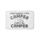 Fun bath mats for home or your camper featuring a camper graphic and the saying- What happens in the camper, stays in the camper. Fun and unique camping gifts.