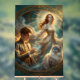 What if your beloved cat were human? This enchanting artwork brings that whimsical question to life, imagining the magical bond between a cat and its human companion in a dreamy fantasy scene.