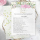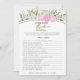 Make your bridal shower an unforgettable affair with our captivating 'What Is The Bride Wearing' game card! Featuring blush pink roses and a beautiful wedding ring illustration, this engaging activity will have your guests guessing the bride's style and keeping the party buzzing! Perfect for spring and wildflower-themed celebrations.