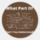 What Part Of Don't You Understand Funny Math Classic Round Sticker