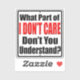 Stick this What Part of I Don't Care Don't You Understand Sticker on a water bottle, laptop or skateboard.