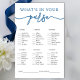 Guests check off which items they have in their purse and tally up their points. The one with the highest total wins! A perfect addition to your classy blue bridal shower theme.